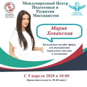 Психологическая поддержка в период самоизоляции от преподавателя Международного Центра Подготовки и Развития Массажистов, психолога-сексолога, кинезиолога Хованской Марии.